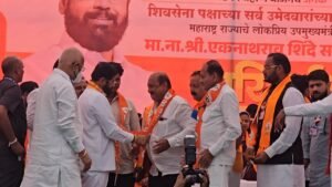 तळोदा – दि 27/11/2025 रोजी स्थानिक स्वराज्य संस्थेच्या निवडणुकीनिमित्त तळोदा येथे आनंद चौकात म. उपमुख्यमंत्री एकनाथराव शिंदे यांच्या जाहीर सभेचे आयोजन करण्यात आले होते. त्या ठिकाणी भाजपाचे माजी जिल्हा उपाध्यक्ष विश्वासराव मराठे ,रोहित विश्वासराव मराठे तसेच विकी खरात यांनी भारतीय जनता पार्टीला अखेरच्या निरोप देत कायमचा रामराम ठोकला. व शिवसेना शिंदे गटात जाहीर प्रवेश केला. आगामी नगरपालिका निवडणुकीच्या तोंडावर हा प्रवेश सोहळा महत्त्वाच्या मानला जात आहे .महाराष्ट्राचे उपमुख्यमंत्री यांच्या नेतृत्वावर विश्वास ठेवून या प्रमुख पदाधिकाऱ्यांनी पक्षात प्रवेश केल्याने स्थानिक पातळीवर भाजपाला मोठा फटका बसण्याची शक्यता नाकारता येत नाही. भाजपाच्या मोठ्या पदाधिकाऱ्यांना आपल्याकडे वळून राजकीय पटलावर आपली ताकद दाखवून दिल्याचे चित्र उमटल्याचे दिसत आहे.