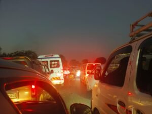 सारंगखेडा यात्रोत्सवात शहादा – दोंडाईचा मुख्य रस्त्यावर झालेली वाहतूक कोंडी